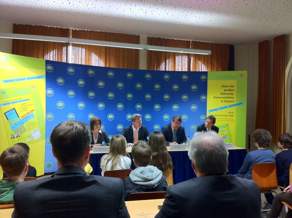 The collection is starting after today's press conference of the STMUG at the grammer school Oskar-von-Miller in Munich Schwabing; at the occasion of this press conference the State Minister Dr. Marcel Huber presents the overall concept of the collection of used mobile phones.