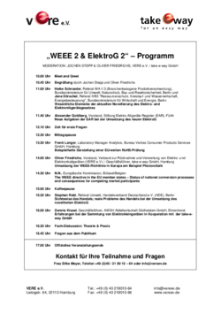We couldn't have scheduled our panel discussion any better; the first draft for the new ElektroG (Electrical and Electronic Equipment Act = German WEEE conversion) is available. Thus, we are able to discuss about the implementation in practice with the concerned employees of the authorities on April 3rd in Cologne/Germany. The event will presumably be hold in German.